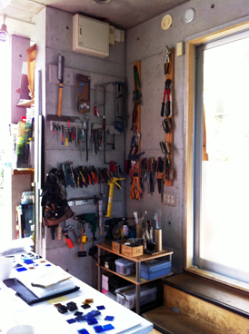 工房にはガラス加工用の道具だけでなく、金属加工や木工の道具もたくさんありました。