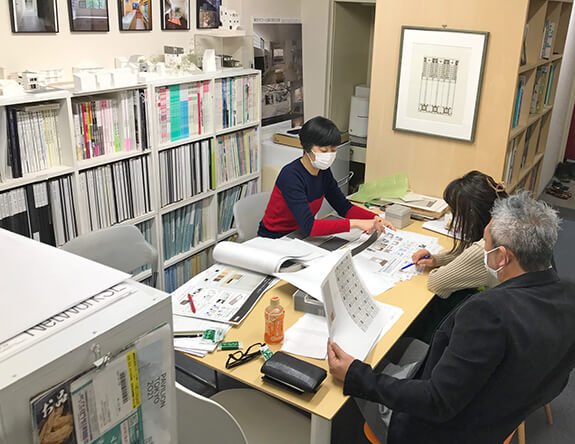 『都会のオアシス中庭のある家』(在来工法木造2階建)の実施設計が佳境に入り、インテリアデザイナーのキナリトさんと共に、建て主の方とお打合せしました。