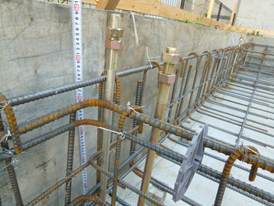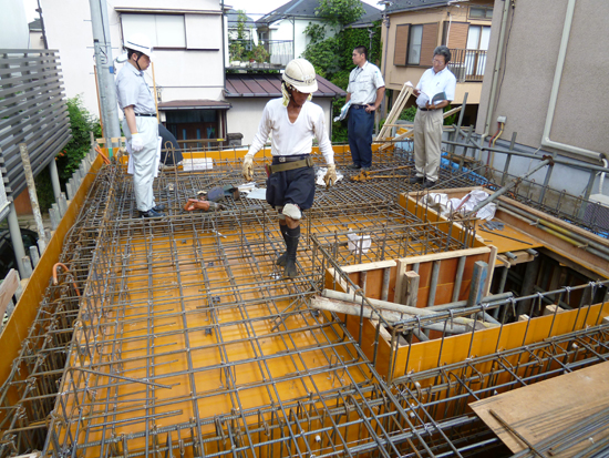 5時前には修正はすべて終わり、1階基礎配筋はすべて完成。明日、地下躯体部分にアンカーをセットし、週明けにコンクリート打設です。