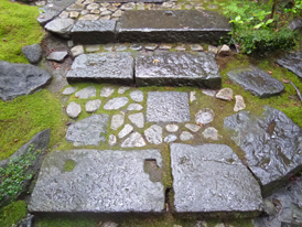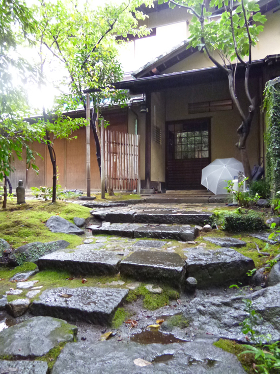 雨なので笠をさして庭を廻りましたが、石や植栽がしっとりとして綺麗でした。