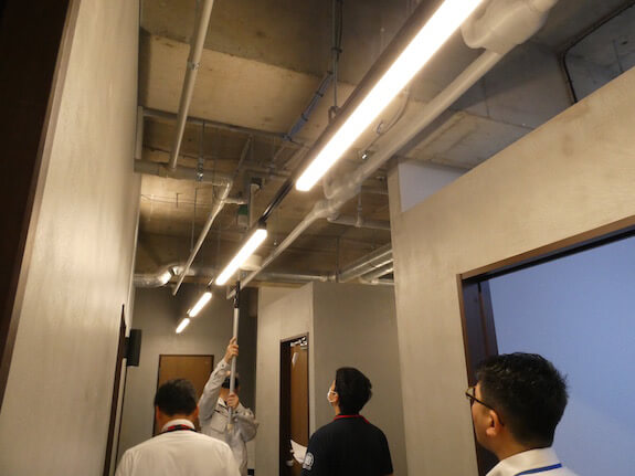 消防署の検査が無事終わったあと、家具工事や照明を確認をしました。