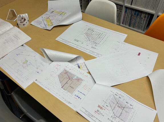 プレカット業者さん、現場監督さんに事務所に来ていただき、構造設計者のsoaps小山内さん、菅田さんを交えて打合せを行いました。