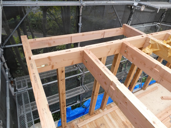 梁が斜めにとりつく部分(鈍角の接合)も、うまく施工できました。