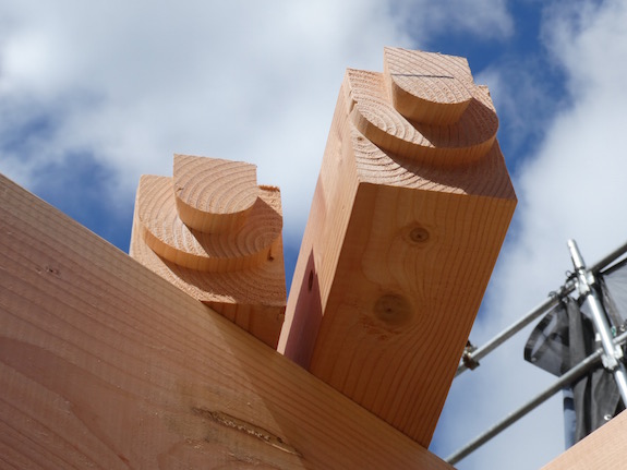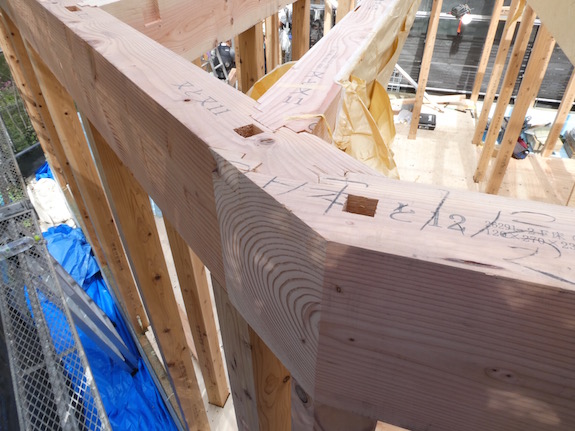 プレカット材の仕口部分を見る。