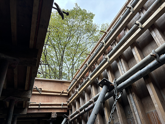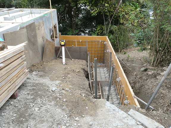 建物の横に設ける駐車スペースの鉄筋コンクリートの擁壁も一緒に作ります。