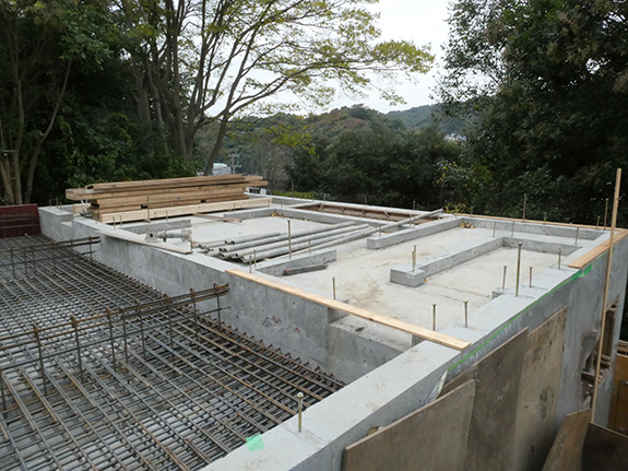 奥側の半分が鉄筋コンクリート造の地下がある部分で、手前の半分が1階の基礎となる部分です。