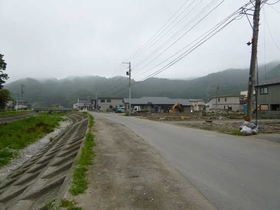今日は大工さんの応援がなく少し心配でしたが、NPO法人オン・ザロードの4人はチームワーク抜群で、僕も少し慣れてきました。途中から地元消防団の方が3名に伝っていただき、3時過ぎに完成。