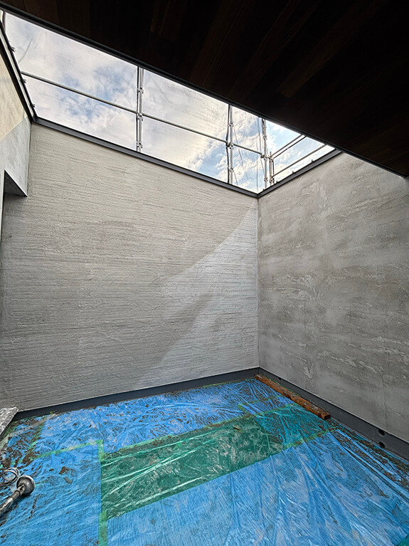中庭周りやバルコニーの壁も左官仕上げになります。