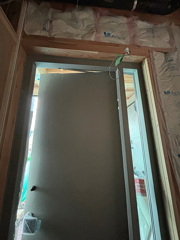 制作に時間がかかり遅れていた玄関ドアもつきました。これで玄関周りの工事が進められます。
