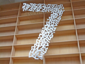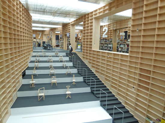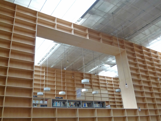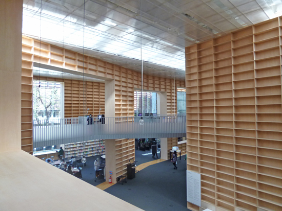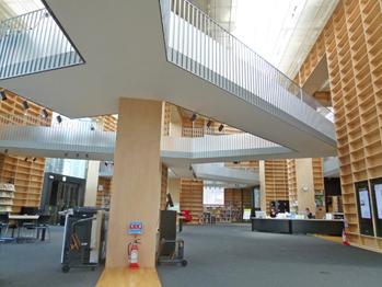 本棚でできたような建物は、今まで見たことのない迫力のある空間で、この中で本棚に囲まれて好きな本が読める武蔵美の学生がうらやましく思いました。