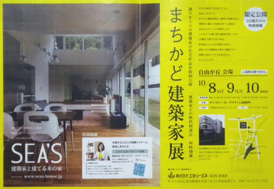 明日(10/8)から3日間、『SEA’S まちかど建築家展 in 自由が丘』に参加します。