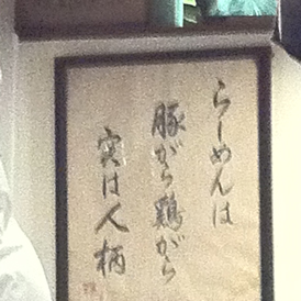 先日、『みんな集まる家』の打ち合せのあと入った、板橋のラーメン屋さん「わ蔵」でおもしろい標語を見つけました。