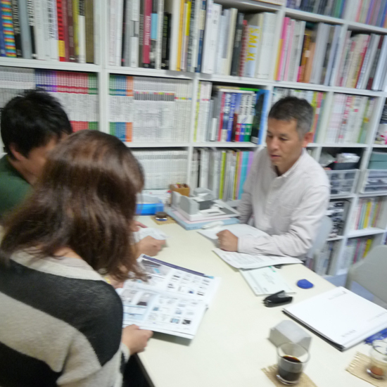 平面図、立面図、断面図など図面の内容の確認とともに、主な仕上げ材やインテリアのイメージ、設備機器、ご予算やスケジュールの再確認も行いました。