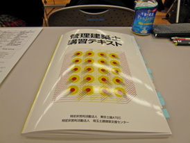 朝9時から午後4時までのテキストを使った講義のあと、修了考査(○×テスト)があり、終わったのは5時半。頭はかなり疲れました。テストの結果がでるのは11月末、どうなることやら。