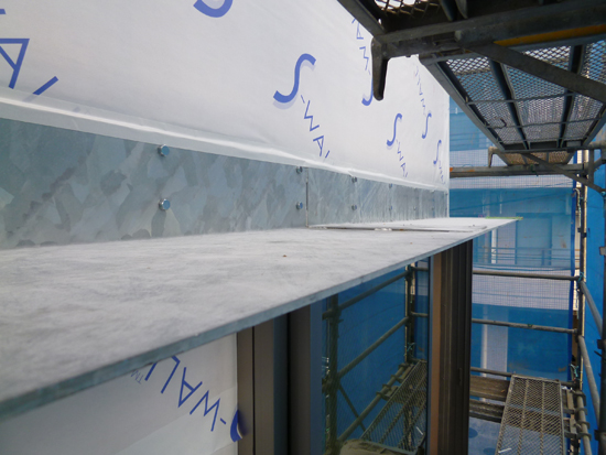 デッキテラスの庇もつきました。庇はスチール(鉄板)製で溶融亜鉛メッキを施しています。来週から、いよいよ外壁の左官工事がはじまります。