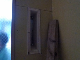 濃い色の板は、母の部屋のカウンターとして再利用する『裁ち板』です。