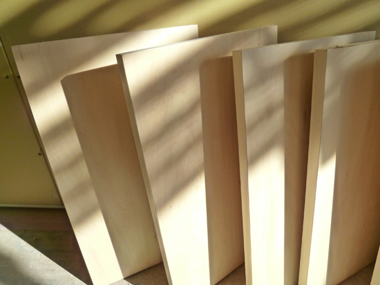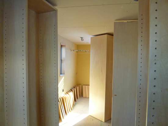 建て主の方が塗装された、子供室のクローゼットと本棚。これから下部にキャスターを付けて可動式にします。