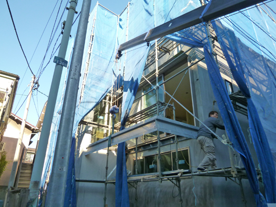 外壁のモルタル下地は完了。サイディング部分はもう少しです。