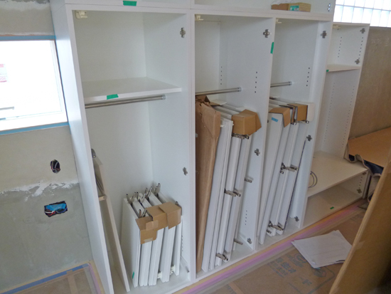 リビングの一画、勉強コーナーの横に設けた子供さんのクローゼット。