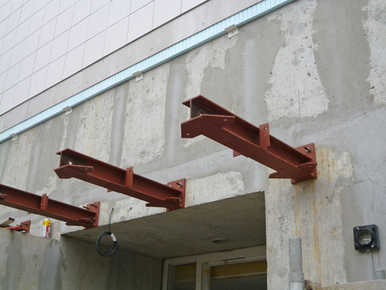 ポーチ上部の庇用の鉄骨下地が付きはじめました。