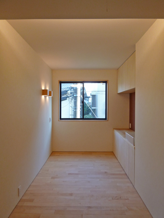 お祖母さんの部屋の天井には段差を設けて、そこに間接照明を入れています。