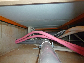 検査では水洗の水の流れや床下も確認。不具合や手直し部分にはテープを貼り、リストをつくって記録に残し、年末や年明けに工事します。