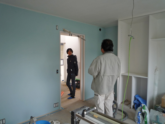 『東京タワーと桜の見える家』は、年明けから仕上げ工事が本格化し、不織布や和紙なども貼られて完成に近づいてきました。