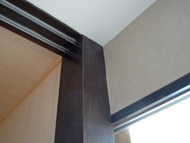 和室には和紙(玉紙:(株)丸和)を目透かし目地を入れてパネル状に貼りました。