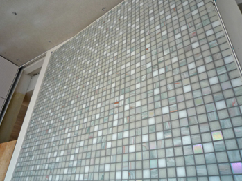 玄関扉にはガラスモザイクタイルは貼られました。初めての試みでしたが、建て主の方にも喜んでもらえて一安心。