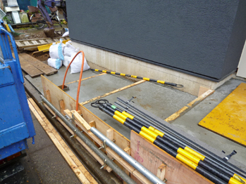 年末にお引渡しを済ませた『みんな集まる家』は、年明けから残ったいた外構工事(アプローチ、駐車スペース、自転車置き場、植栽)を行なっています。