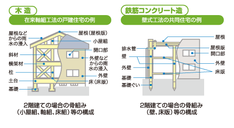 ◆対象となる部分(下図):構造耐力上主要な部分と雨水の浸入を防止する部分◆
