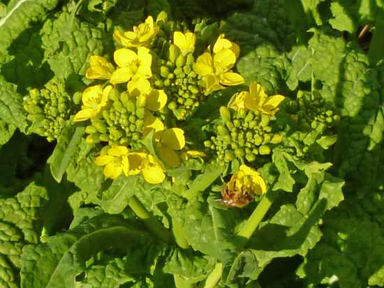「とんぼ池公園」に植えてある菜の花廻りでは、ミツバチが文字どおりせっせと働いていました。
