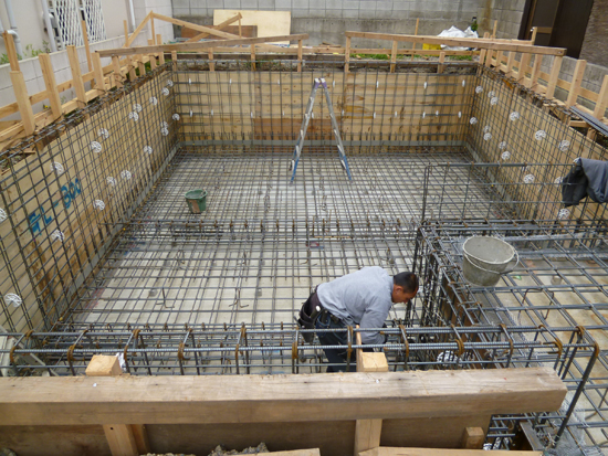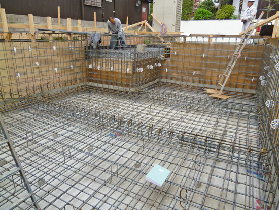 『空と暮らす家(スキップフロア)』の半地下部分(鉄筋コンクリート)の配筋検査に行きました。
