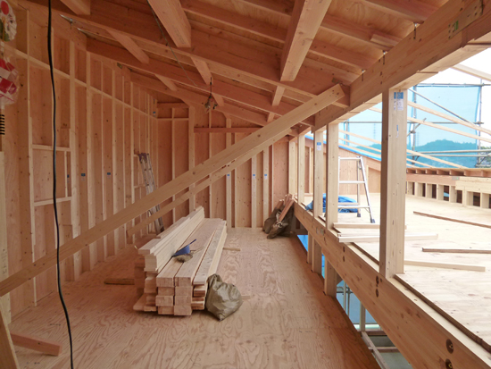 外壁の合板が貼られて、部屋の形がより分かりやすくなってきました。
